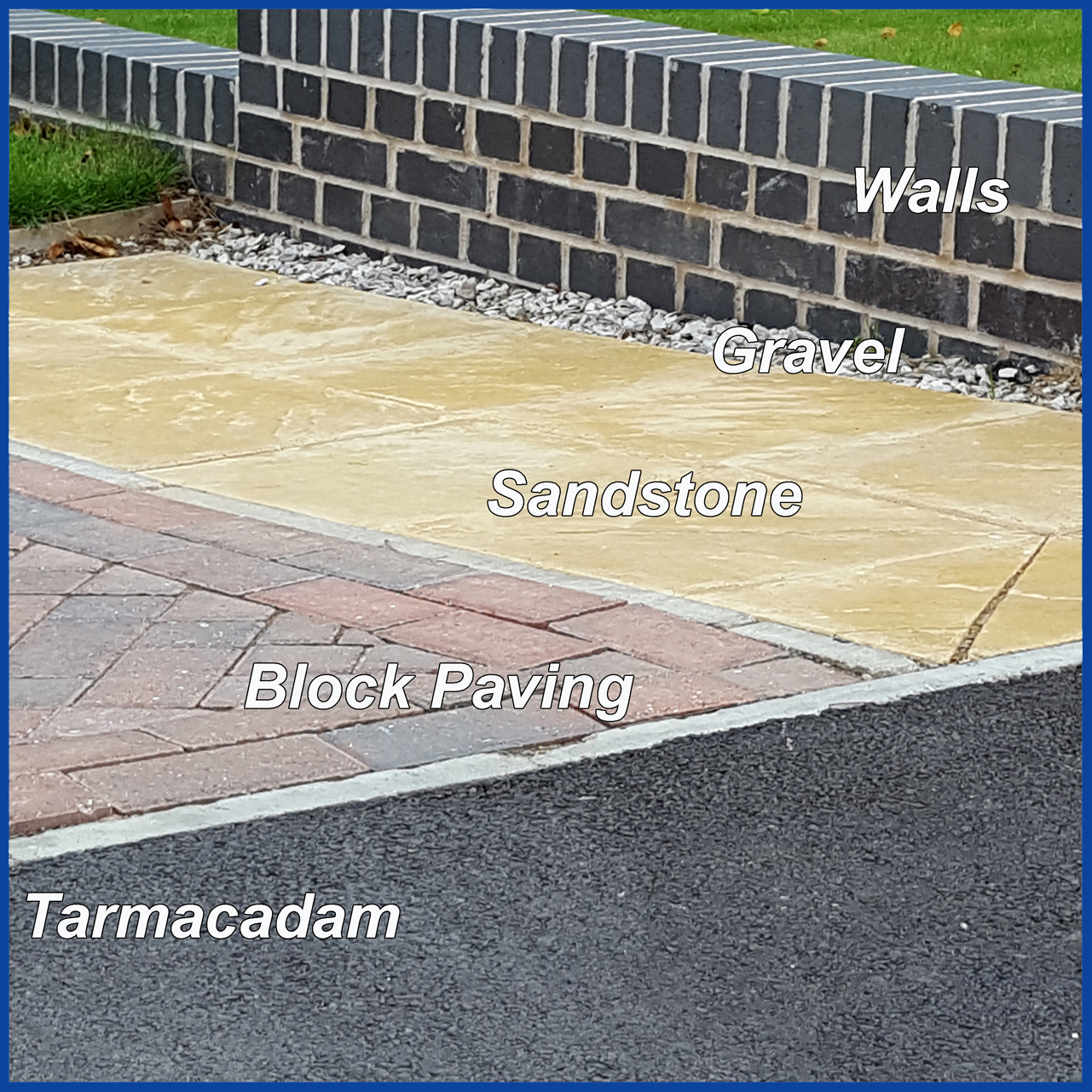 We offer: Block Paving - Tarmac - Indian Sand Stone Paving - Natural Paving - Resin Surfacing - Gravel.